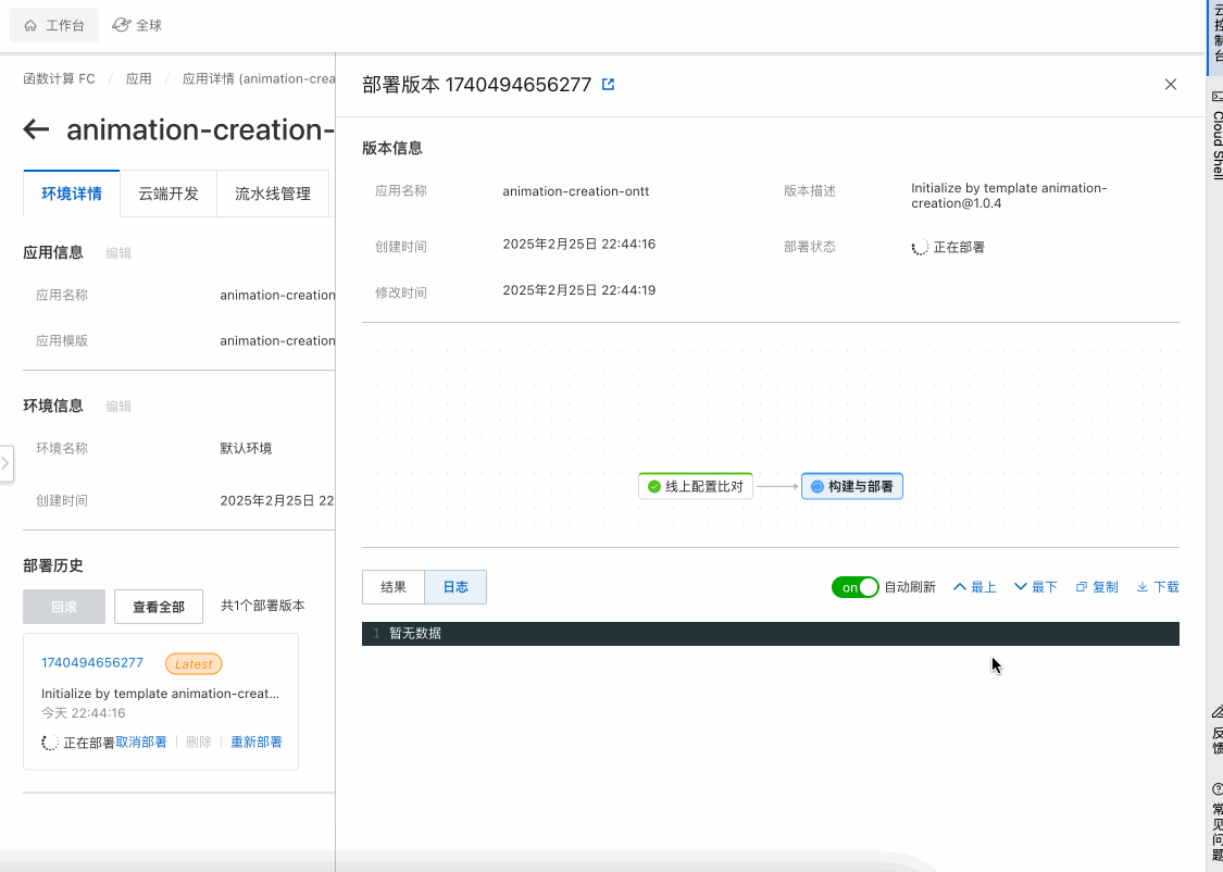 部署过程稍微较慢约(3-5分钟),我们耐心等待