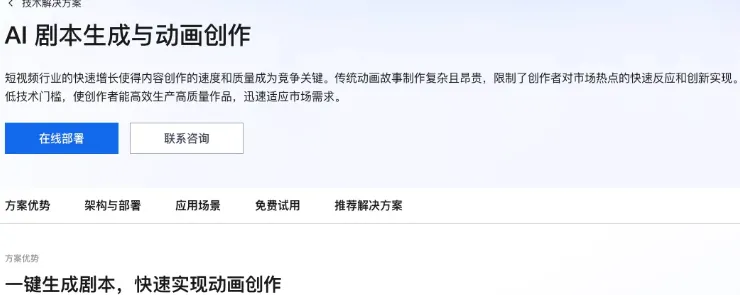 随着短视频行业的快速发展,内容的即时性与创意性越来越受到关注。但传统的动画制作流程(从剧本到分镜、绘制、配音再到剪辑)需要专业团队合作,制作一个3分钟的动画通常要一周时间,成本很高。这种方式很难跟上热点话题的快速变化,错失流量。借助阿里云的“AI 剧本生成与动画创作” 解决方案,我们可以通过AI自动化生成剧本、插图和语音,配合云计算的强大算力,创作流程可以大大提速,降低成本,打破传统方式的局限,帮助短视频内容更高效、更有创意地生产出来。