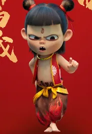 魔童哪吒性格叛逆冲动但善良正义,他有熊猫眼、浓眼妆和小鬏,常邪魅笑,身穿红衣马甲、棕色七分裤,系黄腰带,是惹麻烦的乱世“魔童”。