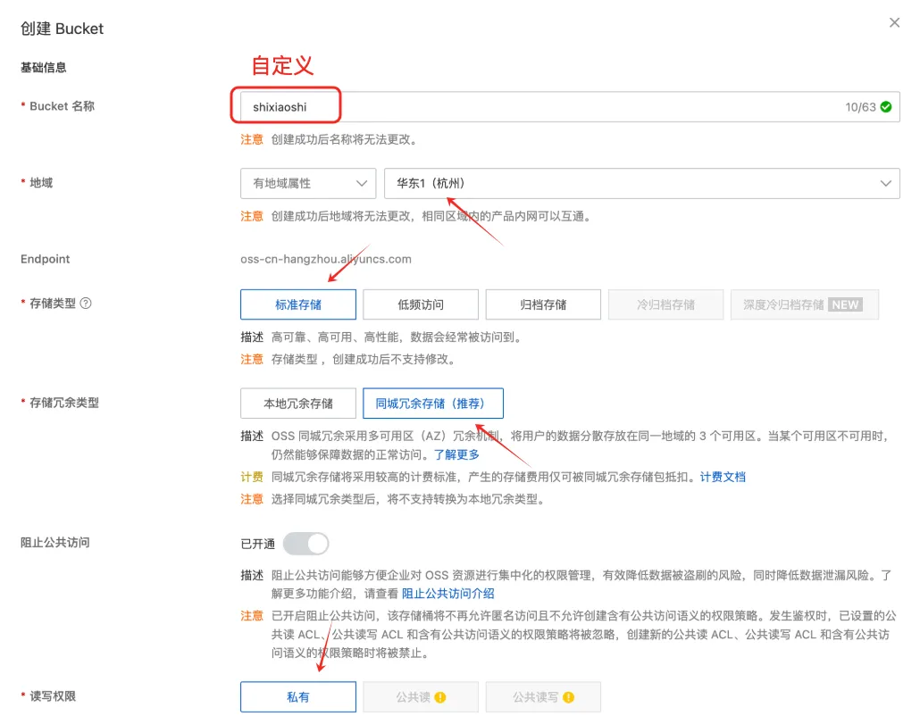 登录OSS管理控制台创建对象存储OSS相对麻烦,首先我们要登录 OSS管理控制台 ,在左侧导航栏,选择Bucket列表。在创建Bucket面板,按照如下信息进行配置,然后单击完成创建。