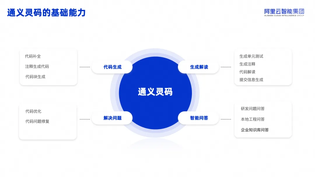接下来,我们将深入探讨主题,以更好地利用通义灵码。首先,我们需要了解通义灵码能够做些什么。简而言之,通义灵码是大模型在研发中的应用。其基础的应用能力主要包括四个方面: