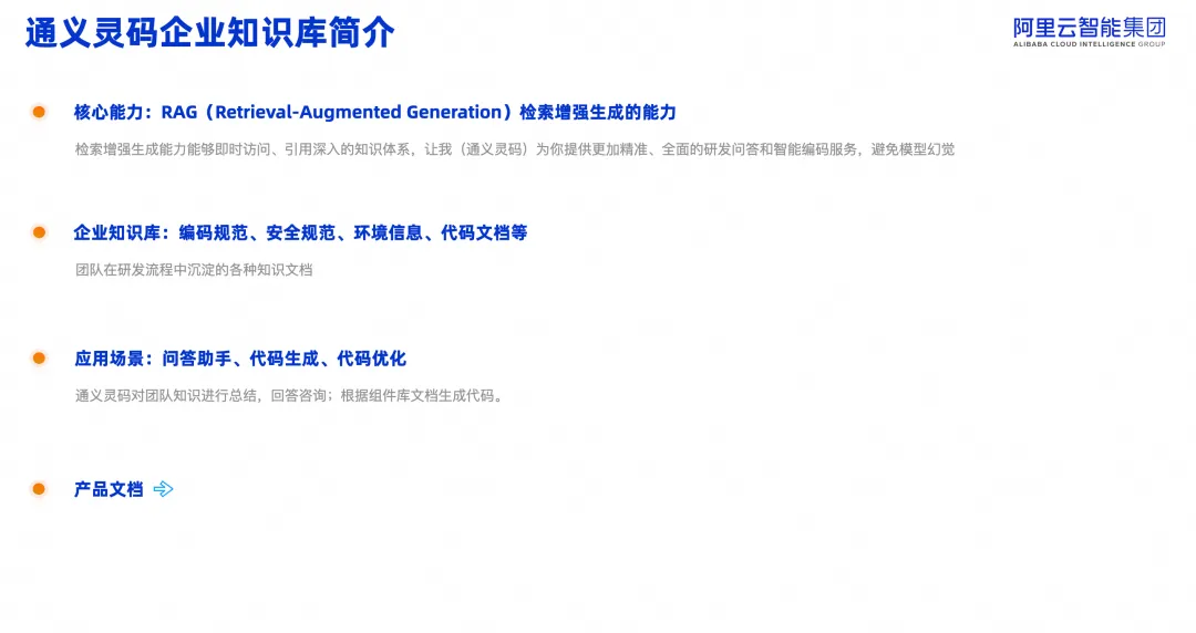 那么我们简单介绍一个利用通义灵码的企业知识库建设团队智能研发助手的应用案例。首先,让我们了解一下通义灵码的企业知识库是什么。