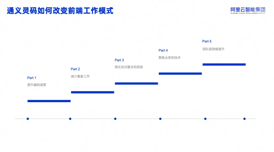 由于时间关系,我只能为大家简要阐述我的理念,并期待大家的继续关注。讲了一些个人如何利用通义灵码提高效率的例子,下面我们探讨如何应用通义灵码提升团队效率。