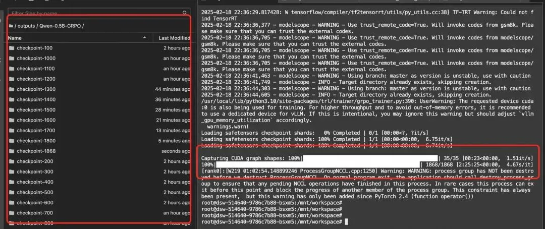 gsm8k数据集一共接近8000条数据,每4次会更新一次,则需要更新2000次,每100步保存一次,则需要生成20个checkpoint。