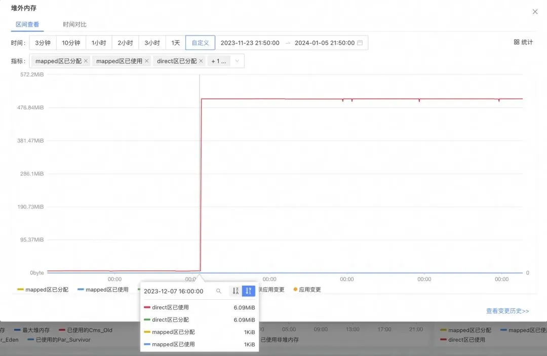 了解到了java进程的内存主要构成,那再回到一开始的问题,到底是什么原因导致了pod内存利用率的告警,通过每个指标的对比,就能很快的发现堆外内存的增长和内存利用率的陡升是同步的,查看当天做了什么变更,进行了JDK11升级的发布,那么问题就回到了为什么JDK11的升级会引发内存利用率的陡升呢?