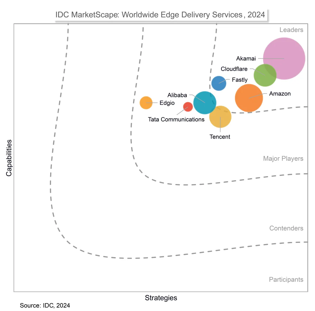 近日,阿里云在IDC 2024全球CDN服务商MarketScape评估中喜获佳绩,阿里云再次被认可为该评选的全球重要玩家(doc#US51812424,2024年)。