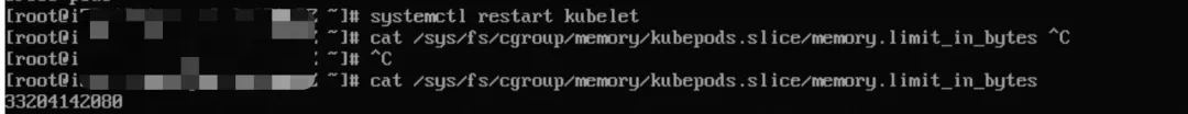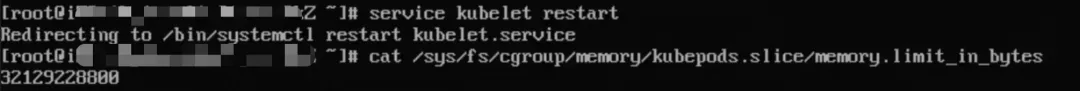 为了验证kubelet设置的值是否正确,祭出运维三宝之重启下kubelet试试,重启kubelet后memory.limit_in_bytes被设置为了正确值。