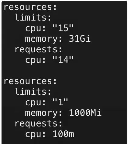 - 不同的业务pod的内存都相当大,独占节点(节点16c32G ,pod limit 15c 31G-主业务container)