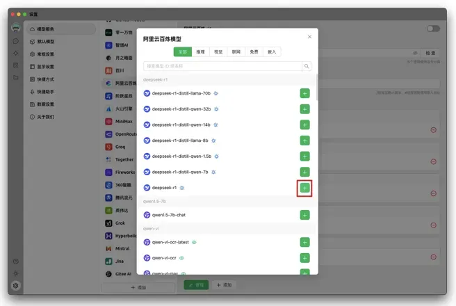 2、DeepSeek 官网有时候太火爆导致服务不可用,可以安装开源 AI 客户端通过第三方 API 服务商使用满血版的 DeepSeek-R1,如 阿里云百炼https://bailian.console.aliyun.com/。