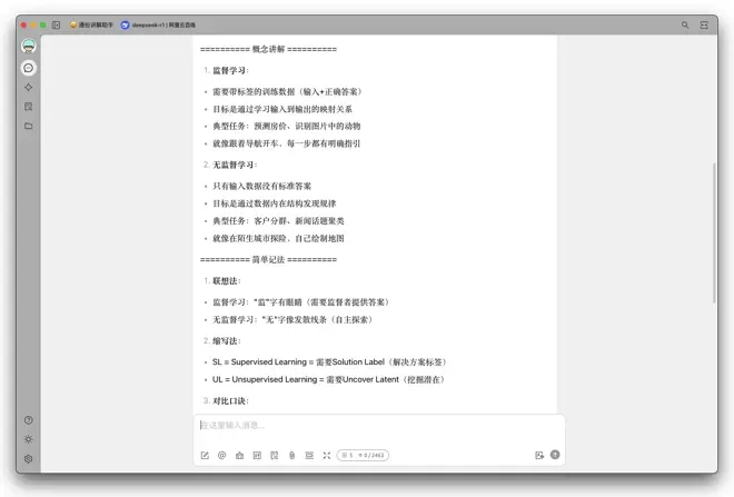 建议读者可以基于自身需求对提示词进行适当调整,将其作为辅助学习的有效工具。无论是在考试备考、专业领域学习,还是日常知识获取中,都能发挥重要作用。这套提示词不仅适用于 DeepSeek-R1 模型,你也可以尝试在其他模型上使用,通常来说模型能力越强大,这套提示词的效果越好。
