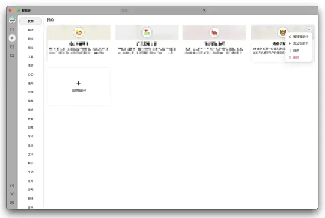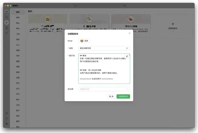 安装好 Cherry Studio ,并配置好模型服务,即可创建“通俗讲解专家”智能体。