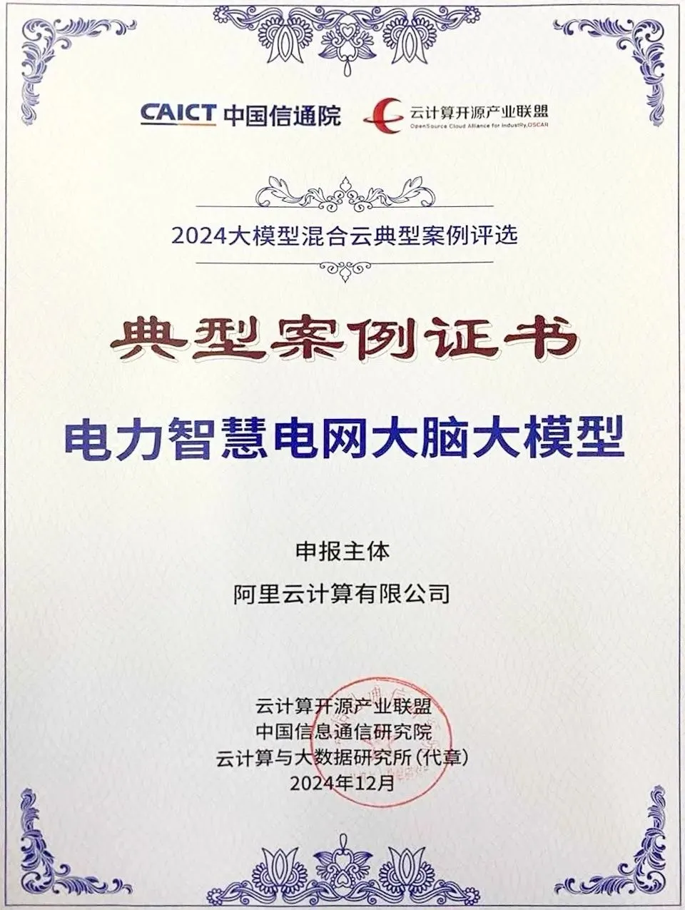 近期,在中国信息通信研究院举办的“央国企上云高质量发展沙龙”上,其首次开展的“大模型混合云典型案例”评选结果公布。阿里云联合客户打造的“电力智慧电网大脑大模型”,凭借大模型与行业应用场景的深度融合,获评典型案例!