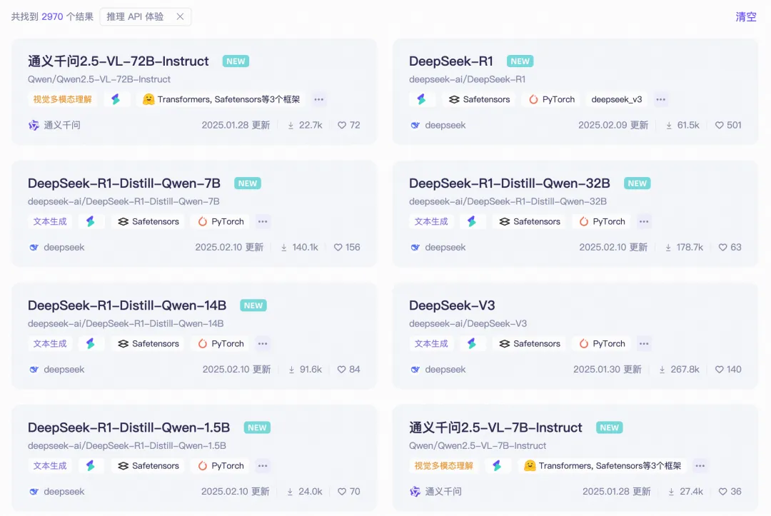 当前魔搭免费模型推理API-Inference已经覆盖了包括大语言模型(包括R1等推理模型),多模态模型,文生图等多个领域: