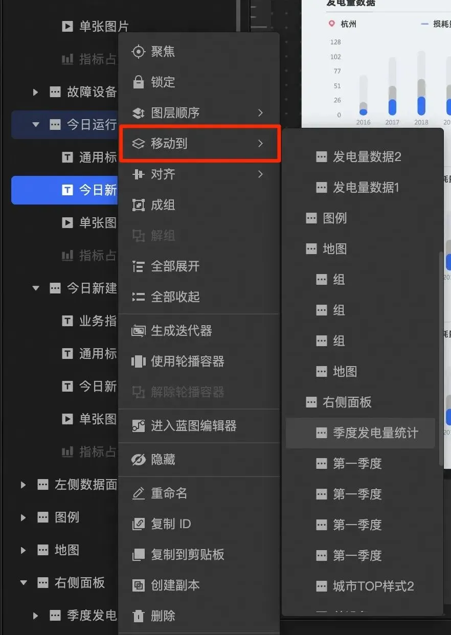 大纲树上选中组件,点击右键,选择「移动到」- 目标分组,瞬移成功 🪄