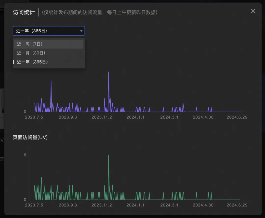 支持按照近一周、近一月、近一年的数据周期查询 📈