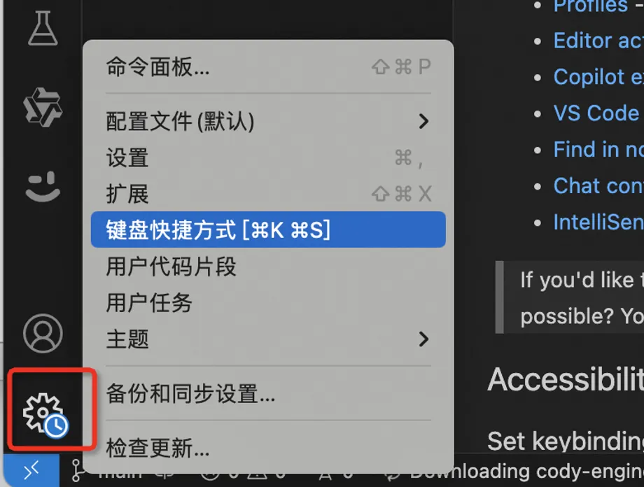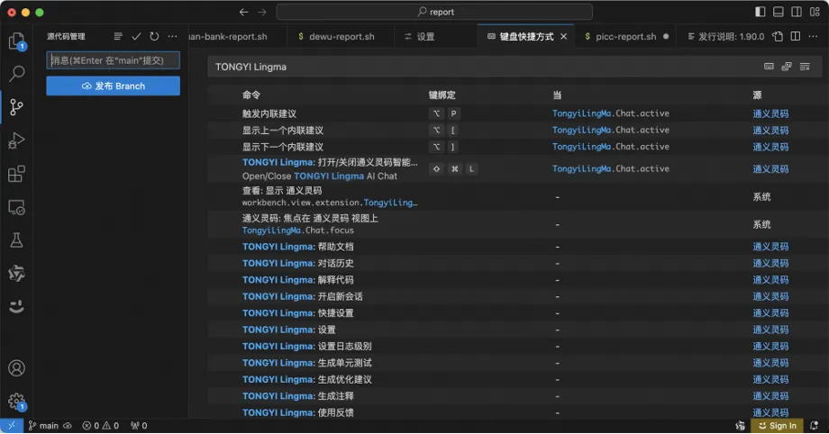 VSCode 的快捷键设置方法。点击 IDE 左下角的设置图标,点击键盘快捷方式菜单,在页面中搜索 TONGYI Lingma 即可查看和编辑所有快捷键。