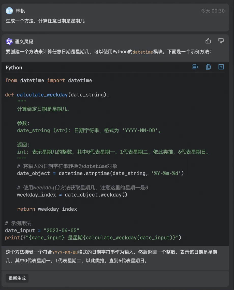 如果针对期望生成的语言或方法签名(方法名、参数类型、返回值类型)有特殊要求,可以在提问的时候将方法签名预先描述好。例如: