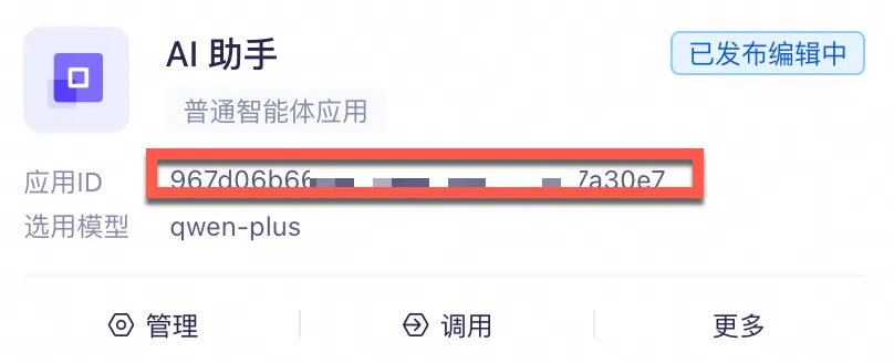1. 在我的应用 > 应用列表中可以查看所有百炼应用 ID。保存应用 ID 到本地用于后续配置。