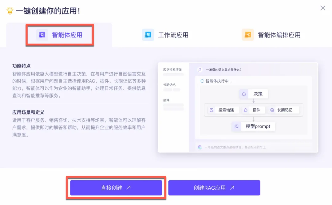 1. 创建大模型问答应用:先通过百炼创建一个大模型应用,并获取调用大模型应用 API 的相关凭证。
