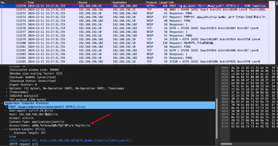 在 37 秒 Gateway 连接 Redis 发送 token(使用 Post 请求里面的 Access-Token 过滤,确保与 31 秒时 Gateway 收到的请求为同一条):