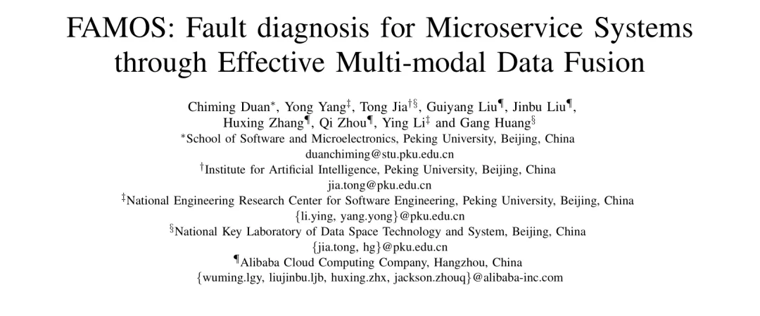 阿里云入选顶会ICSE的论文《FAMOS: Fault diagnosis for Microservice Systems through Effective Multi-modal Data Fusion》则是提出了一项名为FAMOS的故障诊断方法。