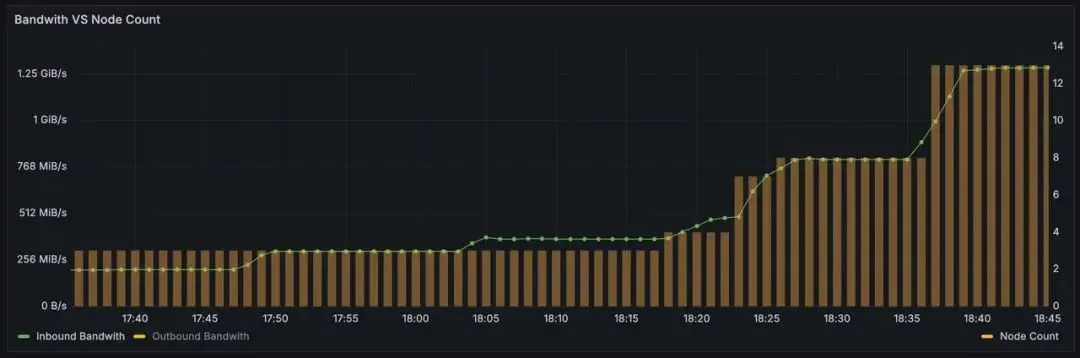应用层做弹性已经如此复杂,到了基础软件做弹性挑战更大,如数据库、缓存、MQ、大数据等产品。分布式高可用高可靠的要求决定了这些产品都需要将数据存储多副本。一旦数据量大,弹性将变得非常困难,迁移数据会影响业务的可用性。为此,要在云环境解决这个问题,就要用云原生的方式,我们在设计 AutoMQ(赋能 Kafka 的云原生方案)时,将弹性作为最高优先级,核心挑战是要将存储卸载到云服务,例如按量付费的 S3,而不是自建存储系统。下图是 AutoMQ 线上的流量和节点变化图,会看到 AutoMQ 是根据流量全自动增减机器,如果这些机器采用 Spot 实例,将为企业节省大量的成本,真正做到 pay-as-you-go。