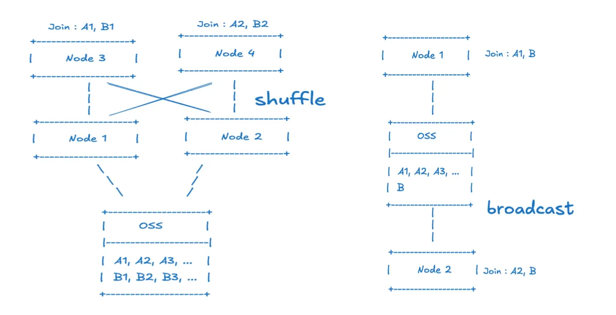 在项目中期阶段,湖上数据集的覆盖率已经达到 50%。然而,由于大多数数据集是从 ClickHouse 迁移而来的单表数据,且当时机型无法满足 DataCache 的使用需求,分析任务仍依赖从 OSS 读取 Parquet 文件。这种情况下,随着用户需求从单表分析转向多表数据集配置,Shuffle Join 的使用频率激增,网卡带宽逐渐成为性能瓶颈。