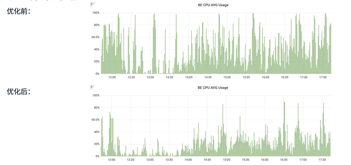 从性能监控数据来看,开启此优化功能后,整体集群的CPU使用率得到了有效控制。特别是在大查询出现时,CPU的负载没有急剧攀升,避免了计算资源的过度消耗。相对而言,P90响应时间在开启该优化后表现更为平稳,避免了因资源过载而导致的性能急剧下降。