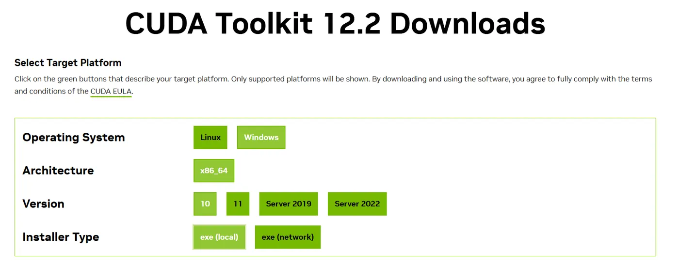 根据你的机子支持的CUDA先选版本,后续根据机子的系统架构版本选择。这里建议选择local的exe。