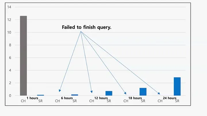 为了确定最佳资源配置,我们使用真实查询和数据测试了 StarRocks 的性能,并将其与 ClickHouse 在1小时、6小时、12小时、18小时和24小时的数据表现进行了对比。