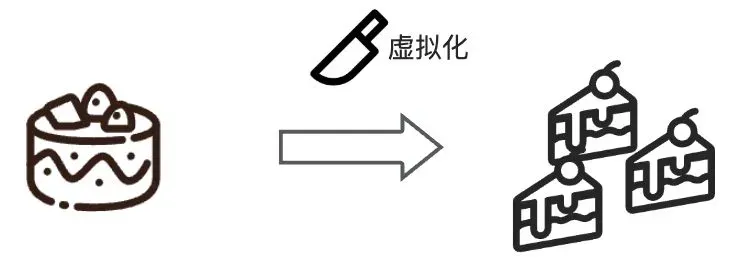 云的一个很重要的技术是——虚拟化,可以把云想象成一块块很大的蛋糕,虚拟化就好比一把刀,目标是把这一块块的蛋糕切开分给不同的用户。