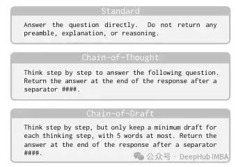 尽管CoD追求简洁,但仍然保持了逐步推理的范式,确保在复杂推理任务中能够实现逻辑连贯的进展。研究团队通过手动构建Chain of Draft示例用于小样本学习,向LLM展示了所需的简洁推理风格。值得注意的是,"每步五个单词"的限制作为一般性指导原则而非严格规范,保留了实际应用中的灵活性。