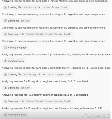 想象一下,你手头有10份简历要筛选。它会像人类一样逐页阅读每一份简历记录关键信息,并根据你的要求给出排名建议。更厉害的是,它还能学习你的偏好,下次直接按你的标准来筛选。而且,你甚至可以关掉电脑,因为它是在云端运行的。任务执行完毕后,它会通知你。