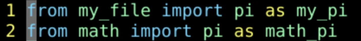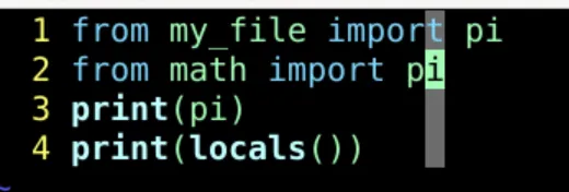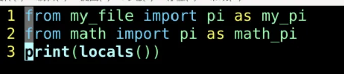 from math import pi as math_pi from my_file import pi as my_pi print(locals())