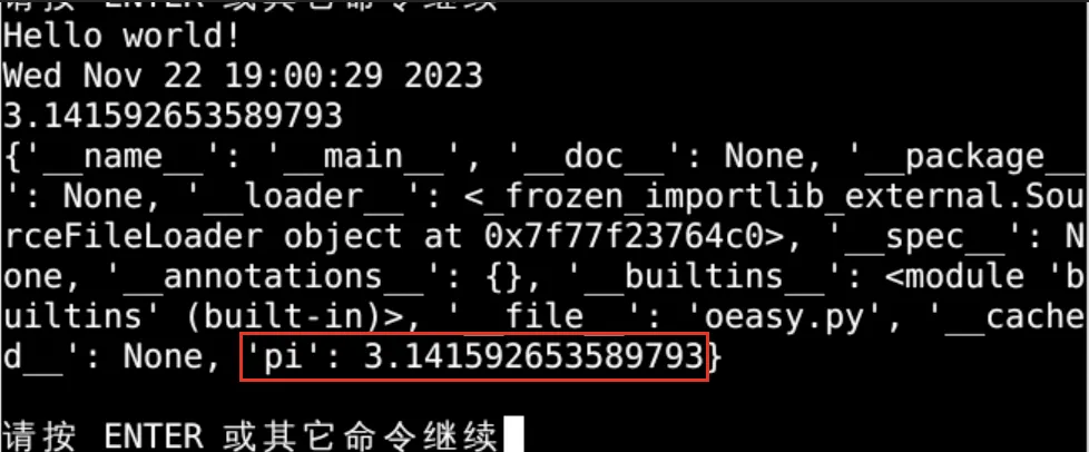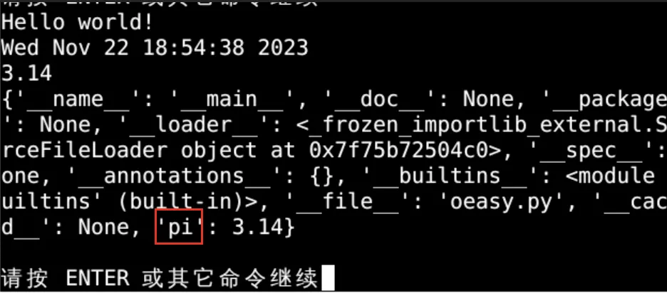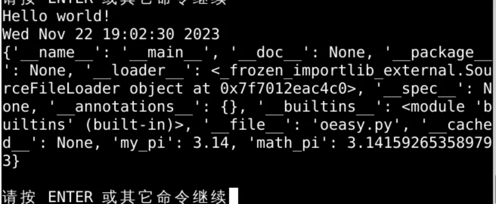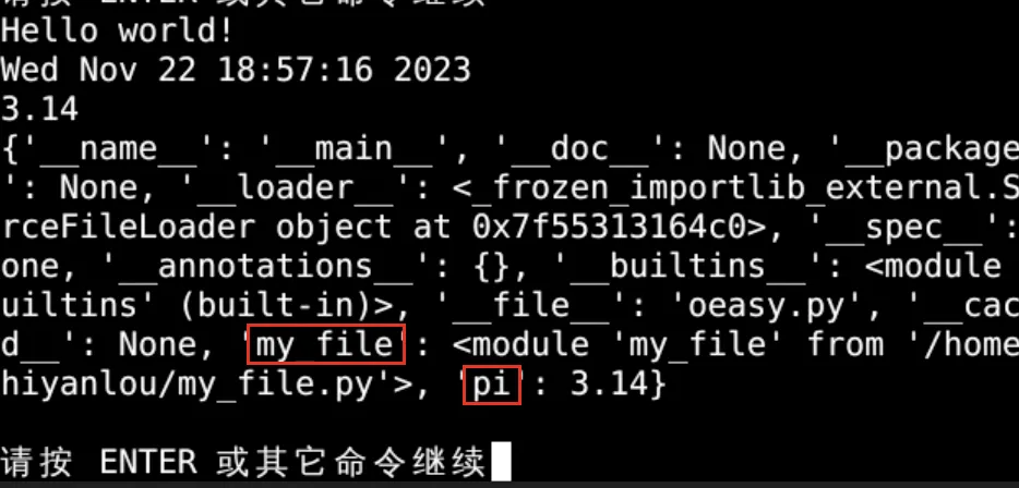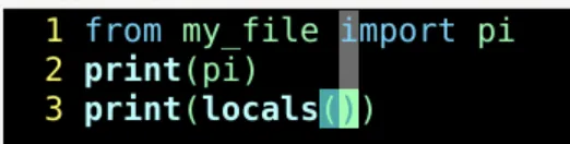 import my_file pi = my_file.pi print(pi) print(locals())