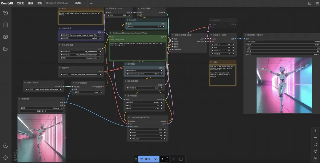 将示例robot工作流的json文件拖入ComfyUI,点击执行即可运行工作流