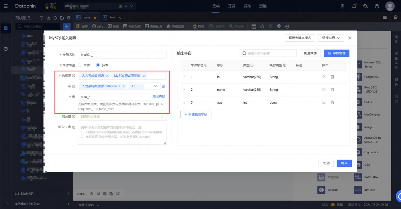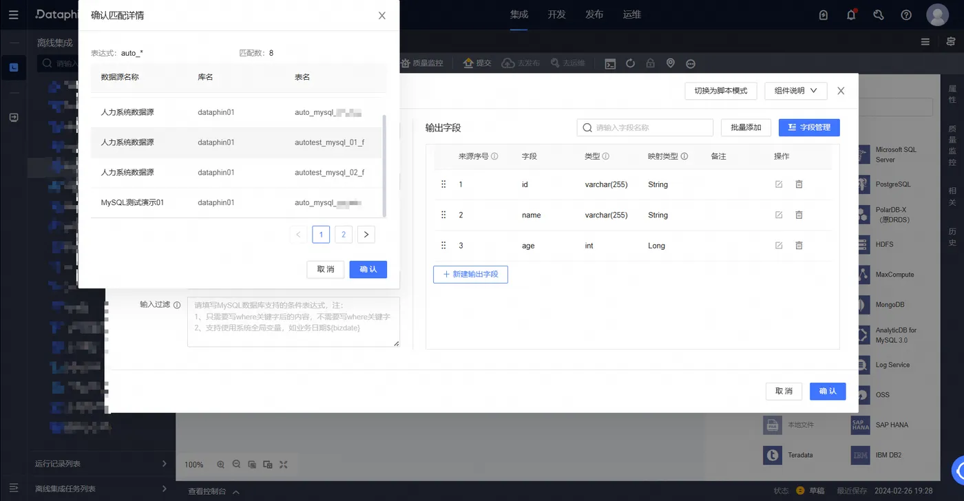 ①Dataphin支持以枚举,类正则,及两者混合的方式,读取不同实例不同库中的表