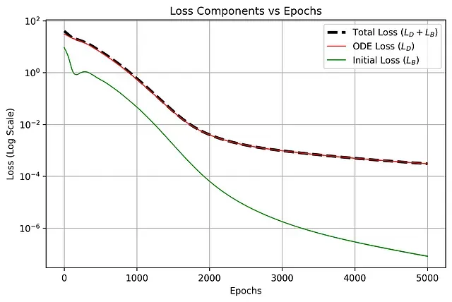 total_loss, ode_loss, initial_loss = pinn_loss(model, x_train)
