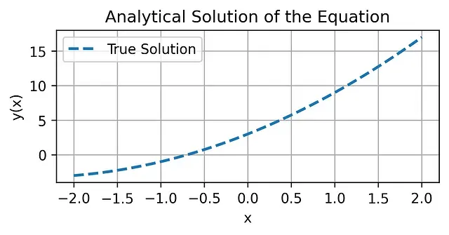 通过结果可以看出,我们已经成功地使用PINN方法求解了上述微分方程,并获得了与解析解高度一致的数值解。