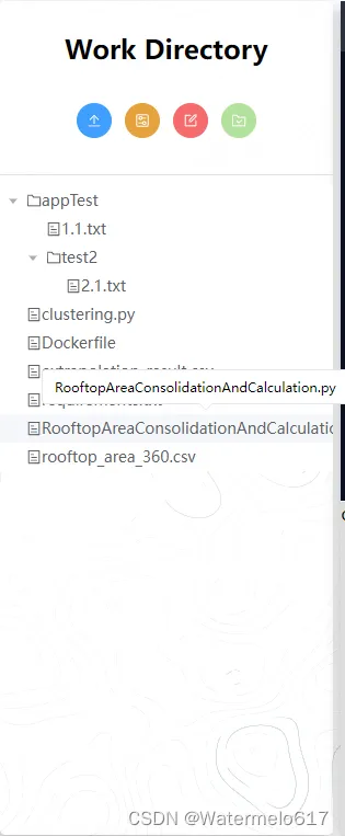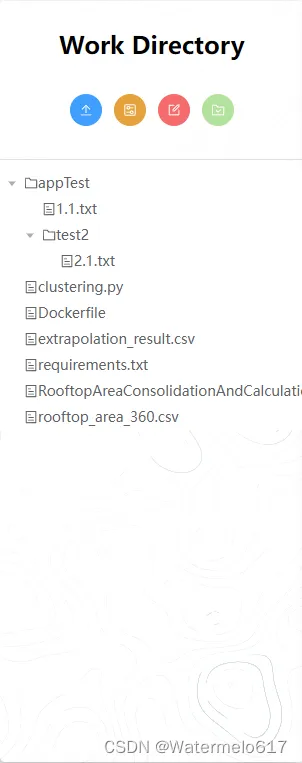 最近做项目时需要做一些云原生相关的内容,有个需求要在服务器上做临时文件夹作为工作目录,同时要将工作目录映射到docker image中和前端页面上。那么将服务器的本地工作目录渲染到前端页面上是必须要实现的部分,其中从后端API获取本地目录信息后,将数据渲染成自定义的前端工作目录是篇博客将要谈到的主要内容。
