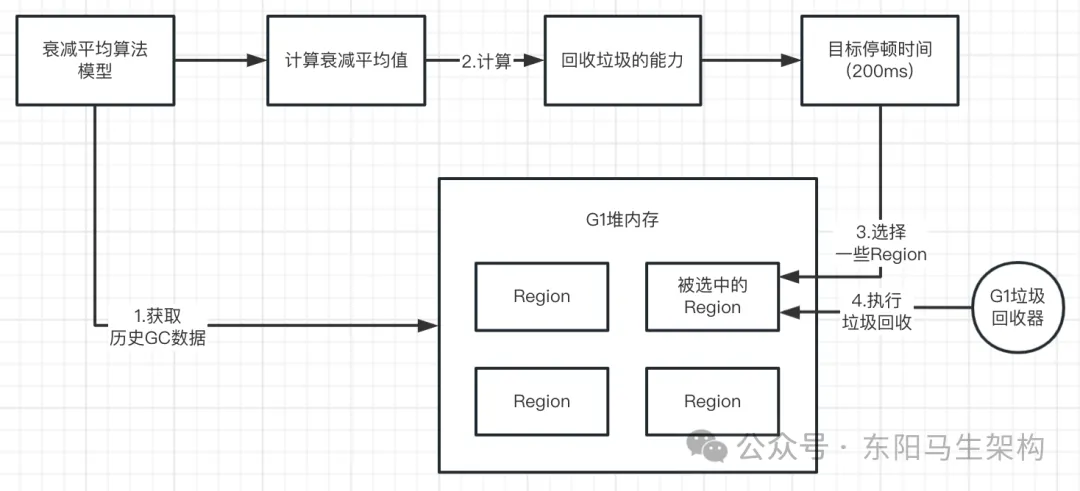 预测在停顿时间范围(200ms)内,G1能回收多少垃圾?比如G1预测能在200ms内回收2G的垃圾,那就选择2G内存对应的的Region来进行回收。