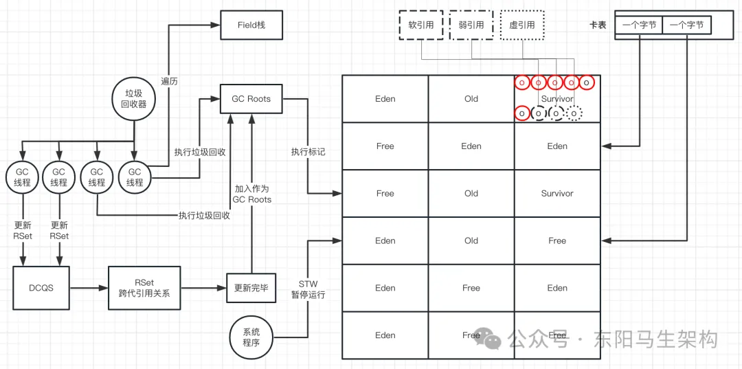 另外,把RSet作为GC Roots的意思是:RSet中映射到卡表对应的卡页中的所有对象都会作为GC Roots。因为卡页本身很小,对象数量也很少,所以可以把RSet都作为GC Roots。然后找到这些GC Roots直接引用的对象,再复制到Survivor区。