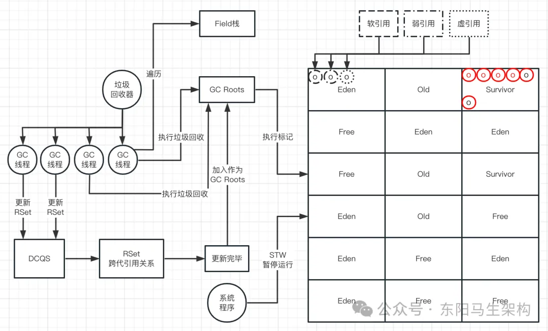 该操作是把这些引用中使用的存活对象也复制到新分区,否则就会出错。YGC中的并发处理阶段针对的是强引用对象。