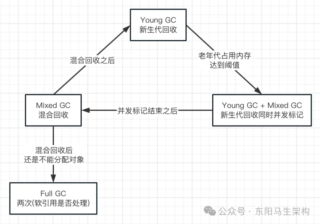 YGC、Mixed GC、FGC间的过程转换关系如下: