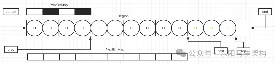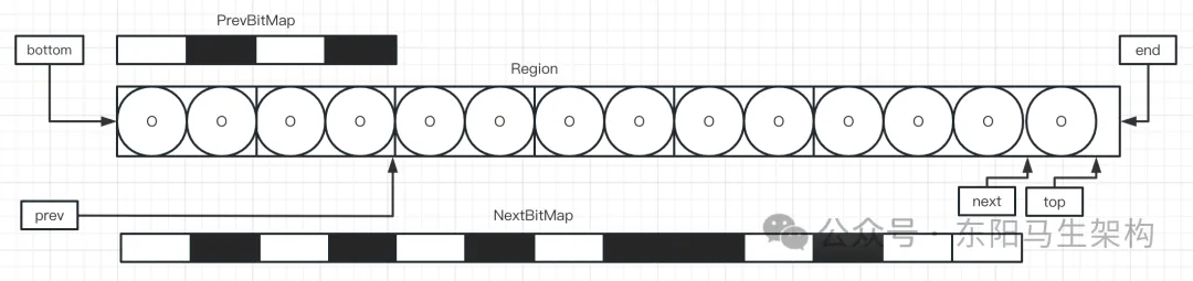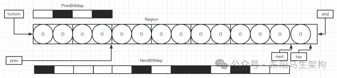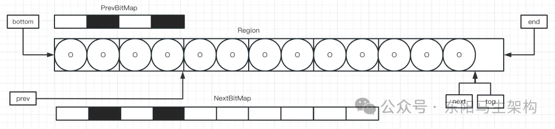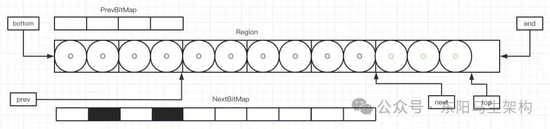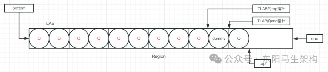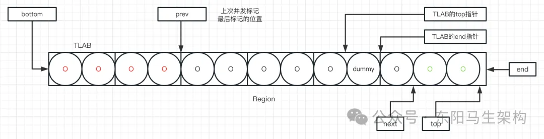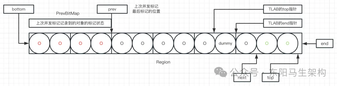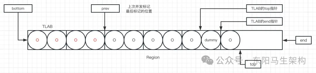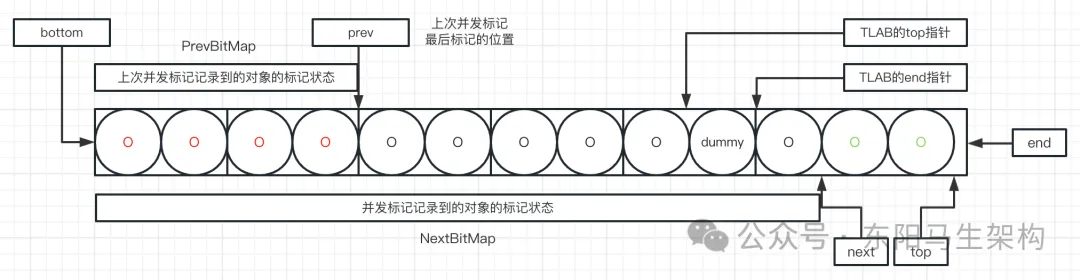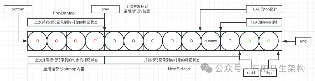 可见,不管在TLAB中还是在Region中,内存的使用一定是连续的。如果有空的内存,就会使用dummy对象进行填充。如果要记录并发标记阶段新产生的对象,则可利用这种连续分配的特性。