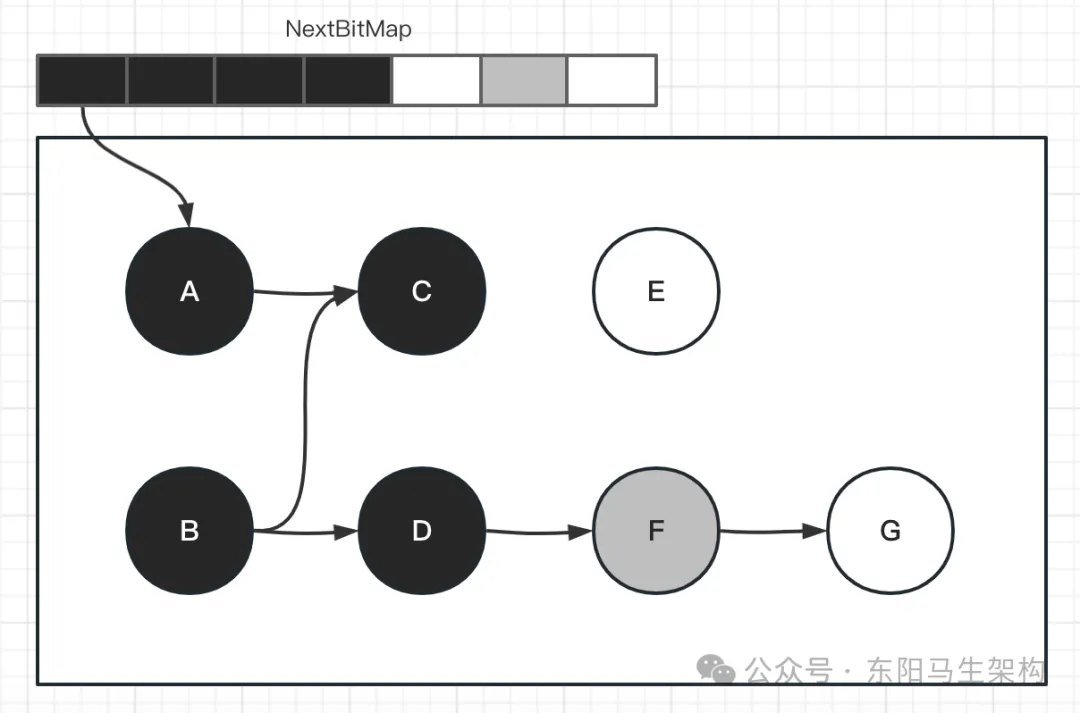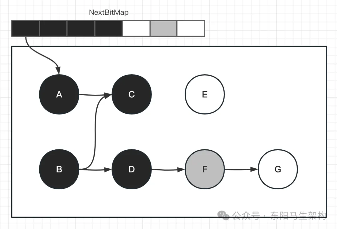 二.同时所有的存活对象、垃圾对象也都被标记在NextBitMap中