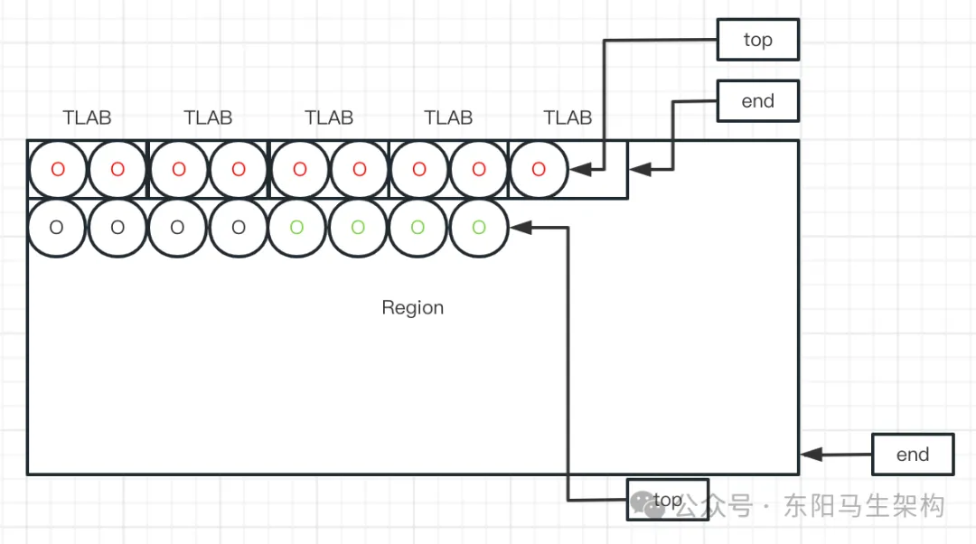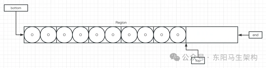 所以在同一个Reigon分配对象时,Region中已使用的内存一定是连续的,如下图示: