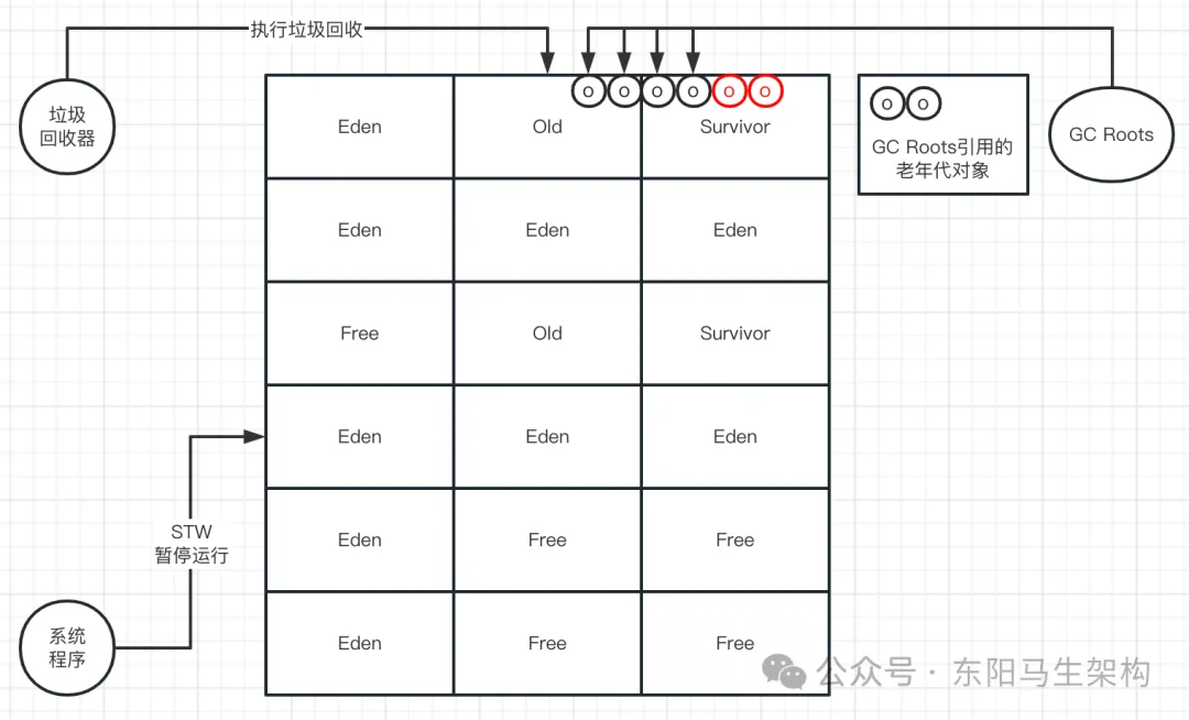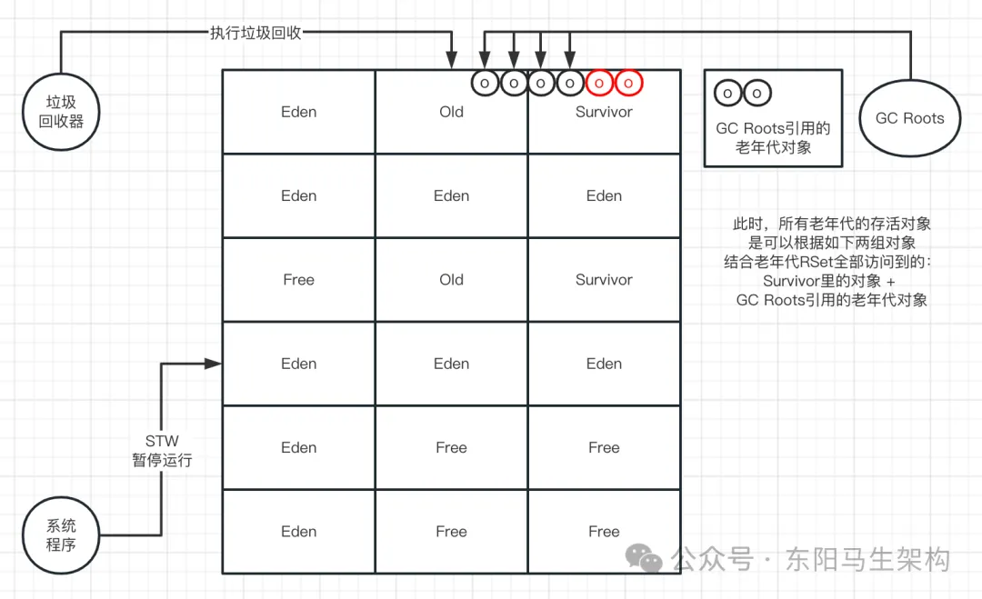 简单来说,在YGC开始时判断是否要开启并发标记的另外一个原因:判断YGC在处理GC Roots时是否要关注和处理直接引用的老年代对象。如果需要开启并发标记,那么就关注处理,否则就不用关注处理(注意:GC Roots是不区分新生代和老年代的)。