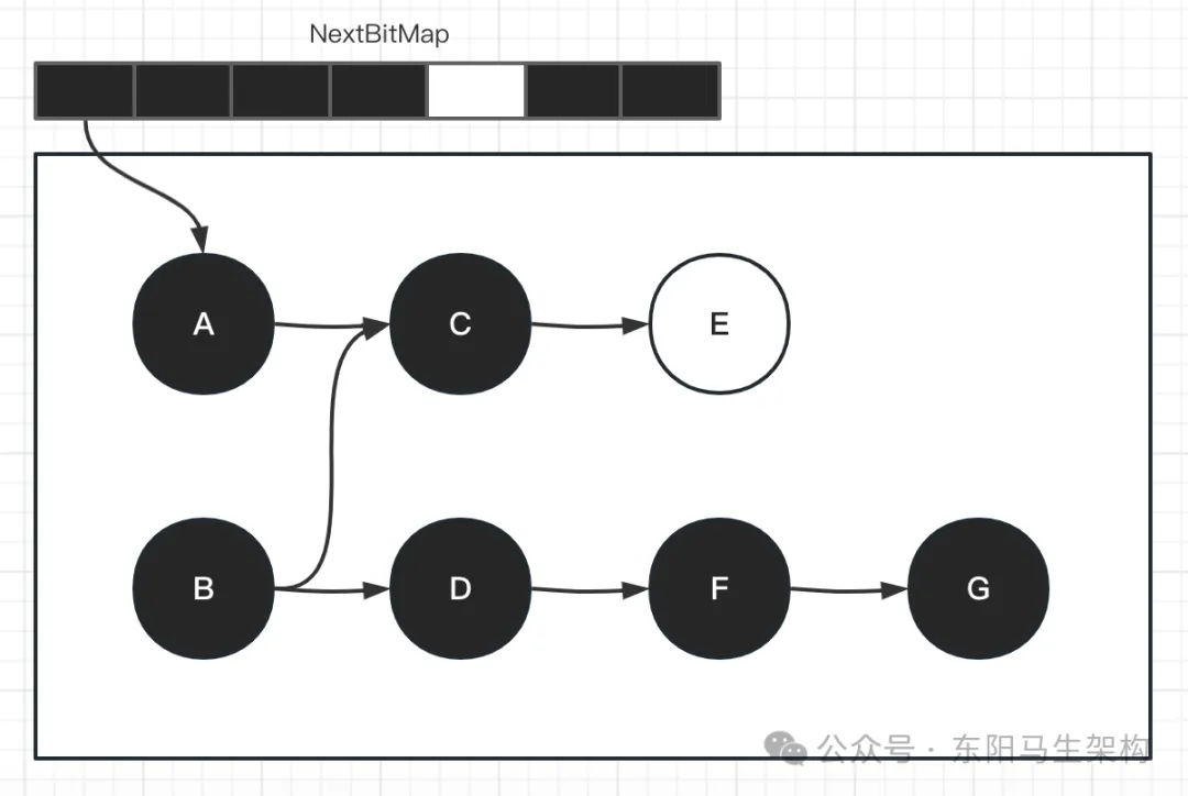 此时对象的引用关系已经变了,NextBitMap会自己继续处理自己的事,继续往后标记。