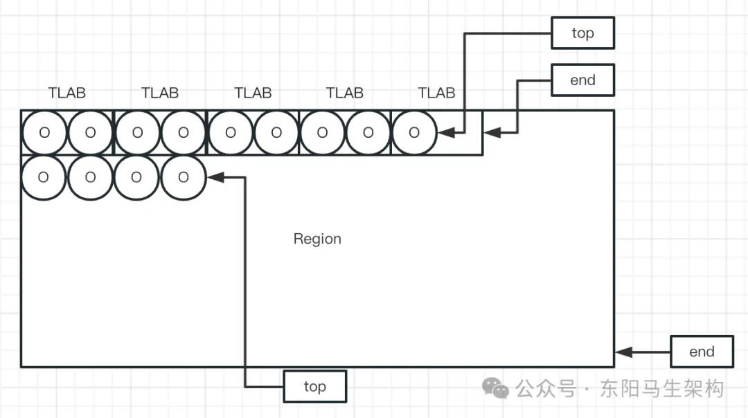 同时TLAB的分配和对象的分配,其实使用的都是同一块代码。TLAB的分配和对象的分配,都使用了指针碰撞法。